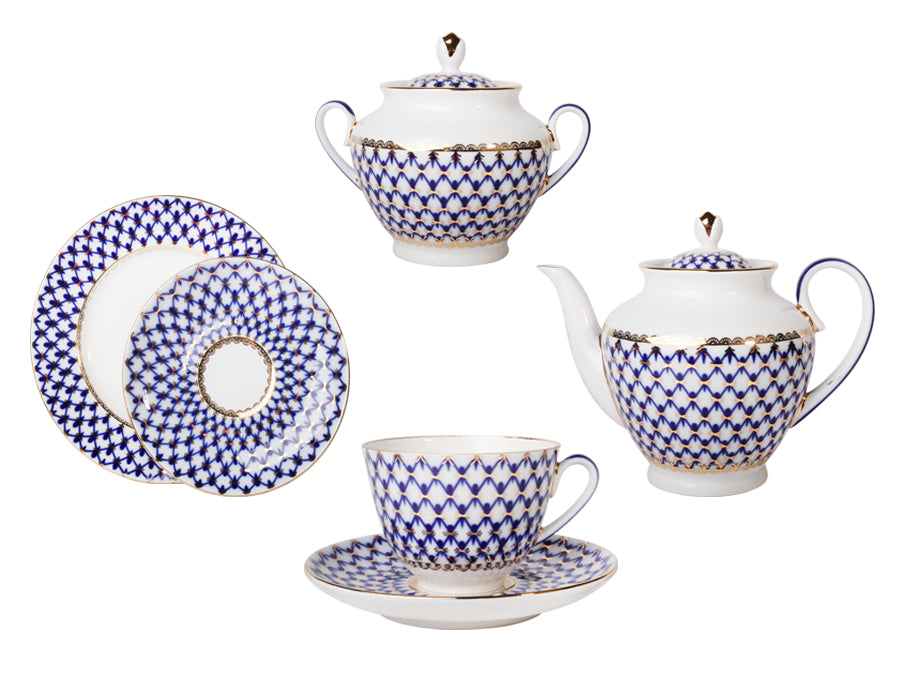 6 Parçalı Bahar Kobalt File Çay Takımı