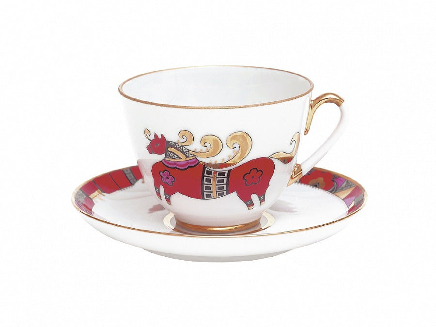 Bahar Kırmızı At Çay Fincanı ve Tabağı