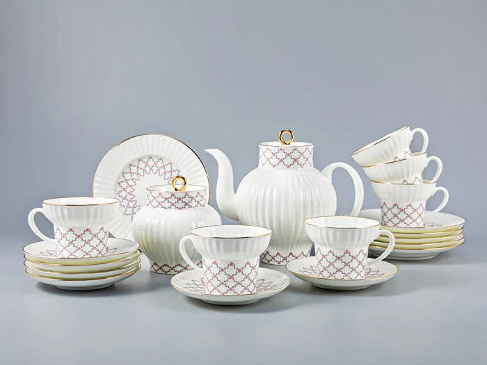 Çay seti Dalga Pembe ağ, 6 kişilik 20 parça