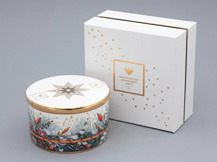 Hediye kutusunda kokulu mum, şekil İdil çizimi Kalenda kokusu Kış ormanı