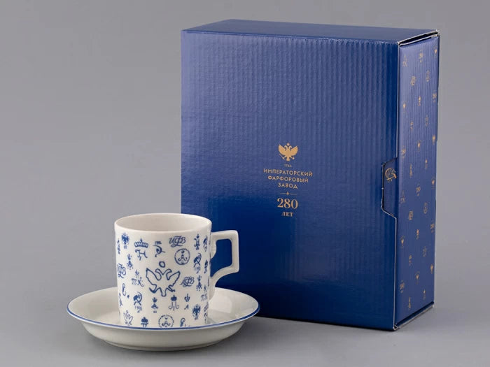 Hediye seti Çay bardağı ve tabağı, Zırh şekli, Logo 2 çizimi